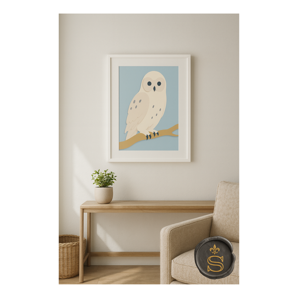 Silent Altitude — Snowy Owl Paper-Cut Art Print (Northern Paper Fauna Hero Motif | Digital Download)